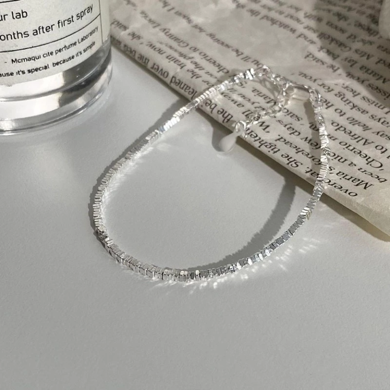 Thiết kế tối giản: Mẫu vòng tay này được thiết kế bởi những hạt vỡ li ti, kết hợp nên hiệu ứng sáng lấp lánh khi nàng cử động tay.